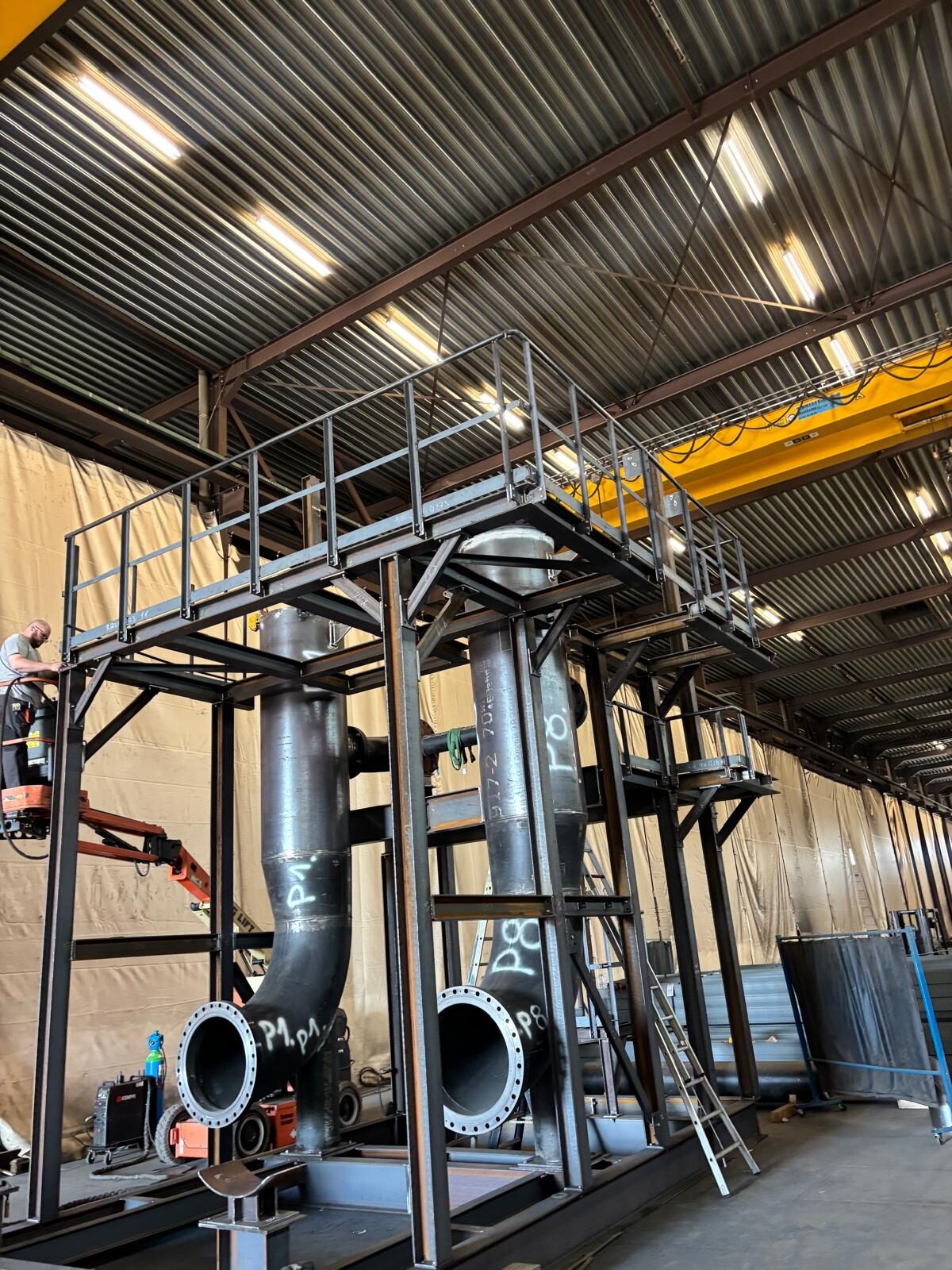 Our expertise in piping and skid systems also benefits the construction of Belly Tanks. These tanks, often used in critical applications such as data centers, require an integrated approach where piping systems and structural components work seamlessly together. With our experience, we provide turnkey solutions—from engineering and material supply to full fabrication and installation of both the tank and the associated piping and skid systems. This ensures efficient, safe integration with attention to space optimization, corrosion protection, and compliance with industry standards.